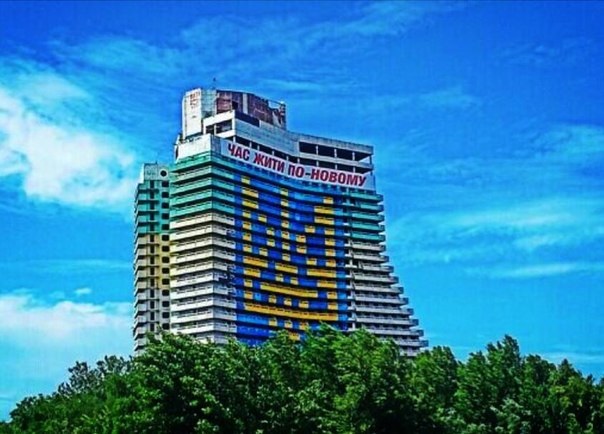 огромного баннера "Час жити по-новому" в поддержку Порошенко на