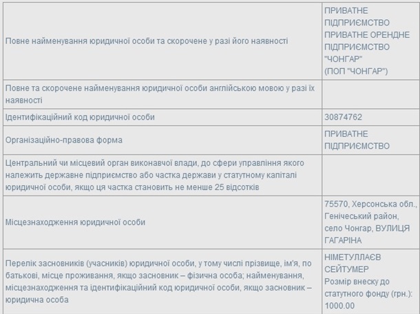 При этом всем, в селе Чонгар Херсонской области продолжает успешно функционировать его предприятие – ЧП «Чонгар».