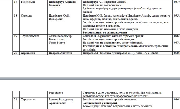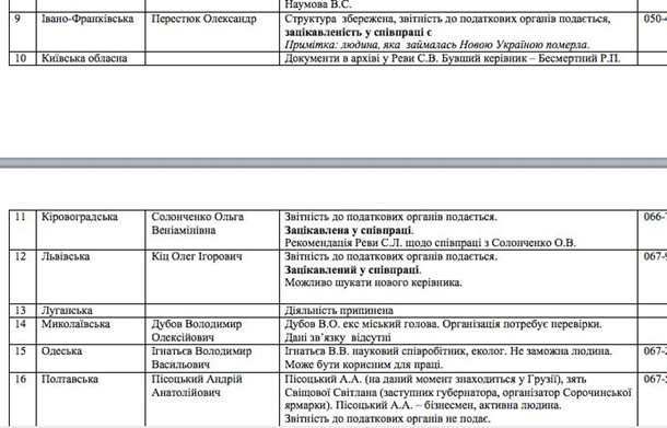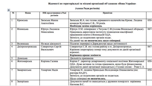 З метою визначення стану регіональних та місцевих організацій об’єднання «Нова Україна» необхідно направити відповідного листа з визначеними позиціями. Що стосуються реєстрації, керівного складу, осередків, членів, наявності офісу, матеріально-технічного забезпечення та фінансування.