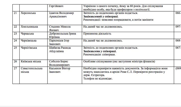 У Київській обласній організації відсутній керівник, а документи знаходяться в архіві, який буде переданий по акту приймання-передачі. Керівником даної організації був Безсмертний Р.П.