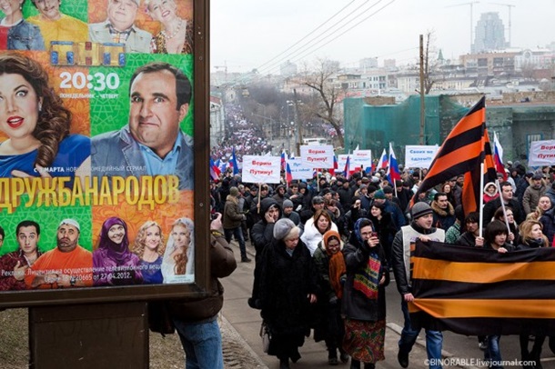Во-первых, в России есть стратегия государственной информационной работы. Некая линия, которая проникает сквозь столь любимые телесериалы, новостные сюжеты, общение с активистами; все это формирует стойкие стереотипы у граждан. Милиция – наш друг, силовики – не идеальные, но волевые, Украина – требует защиты от «хунты», наш Президент прав в принятии столь решительных мер…. Попробуйте вспомнить еще несколько образов, сформированных в иностранных информационных полях (обратите внимание на стройные системы РФ и США). Найдите аналог в Украине.