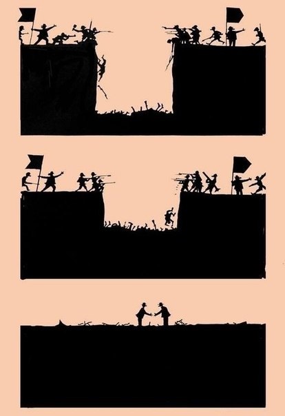 Суть сводится к тому, что война это плохо, надо ее прекращать. Я сижу в