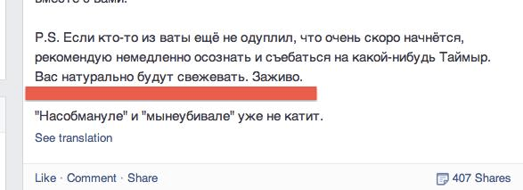 Он обещает «свежевать живьем» людей, закапывать и резать. Впрочем, обещает он это из Киева, куда сбежал от луганских реалий. К слову, этот человек почему-то не упоминает, что сбежал один, бросив с «маньяками-лугандонами» свою супругу.