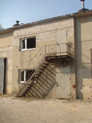 Повезло без жертв и раненых.Рядом база спец батальона Кальмиус. Обстрел шел со стороны аэропорта.