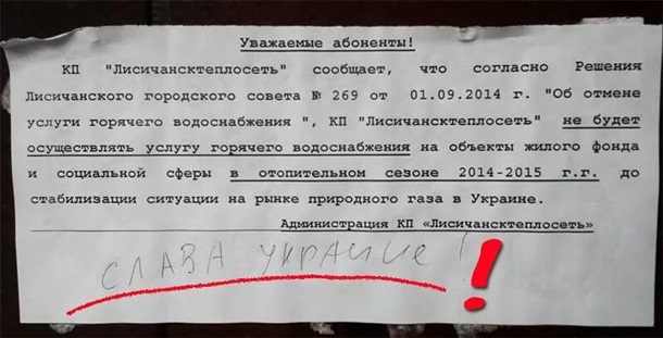 стране за пределами столицы повсеместно остановлено горячее водоснабжение (с лета это
