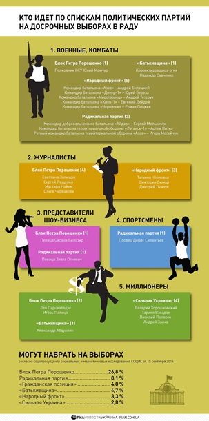 представлена сразу 8 партиями и блоками: Блок Петра Порошенко, Народный фронт, Блок