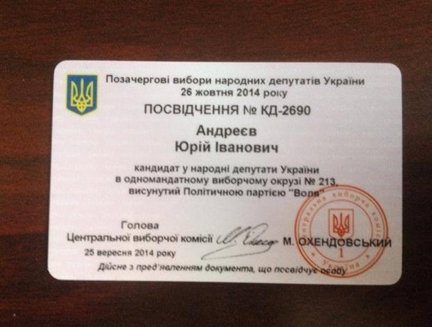 Юрій Андреєв - кандидат у народні депутати України в одномандатному виборчому окрузі №213, висунутий Політичною партією "Воля", за підтримки "Об'єднання "Самопоміч".