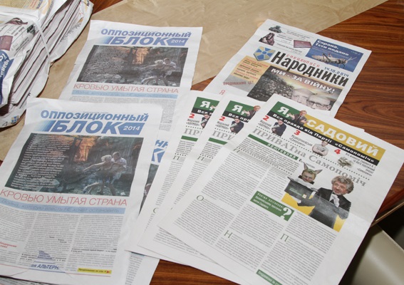 Арсен Аваков повідомив, що в столиці був виявлений склад. Там зберігалася незаконна друкована продукція, що містить неправдиву інформацію і порочить політичні партії та кандидатів у народні депутати від партій «Народний Фронт» і «Самопоміч». Крім того, на складі виявлений великий тираж агітаційної газети на підтримку «Опозиційного блоку». За оперативною інформацією, склад був орендований однією з політичних партій. Незаконні агітки були надруковані в одній з друкарень в Київській області.