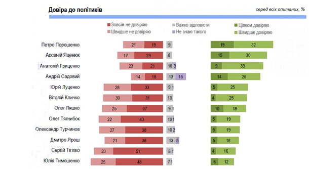 Яценюк – четвертий по недовірі знизу та другий по довірі. У його соратника