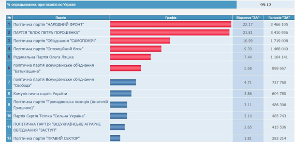 «Партій миру»: НФ, Самопомочі, блоку «ПП». Недобір голосів РПЛ та Громадянською