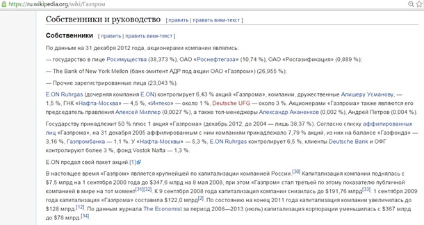 Путин, конечно, «патриот» до мозга костей. Государственная доля акций «Газпрома» составляет 50,002%, а на втором месте по количеству акций The Bank Of New York Mellon (26,955%)… Прочие зарегистрированные лица, на чью долю приходится 23,043% акций, это самые богатые люди России.