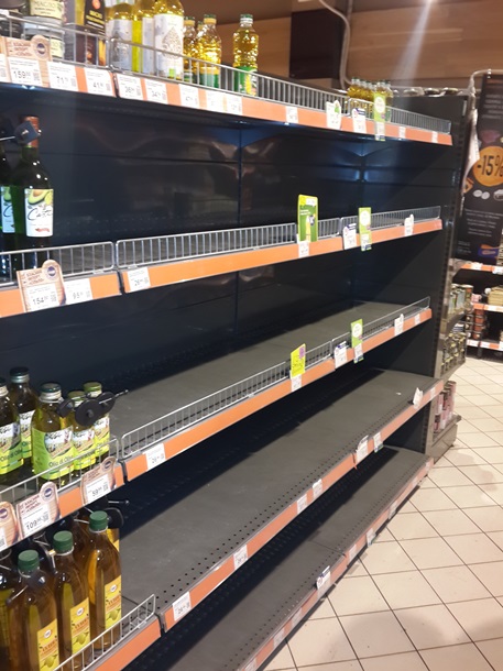 Фото: Киев, Оболонь, супермаркет "Сильпо". Полки, где только что размели