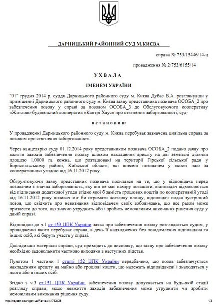 судебных решений Украины на счета ЖК «Кантри Хаус» - компании, возводившей вышеупомянутый дом наложен