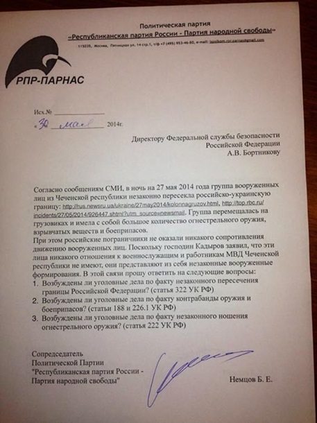 запитом. Посилаючись на публікацію у відкритій пресі, 30 травня 2014 року він