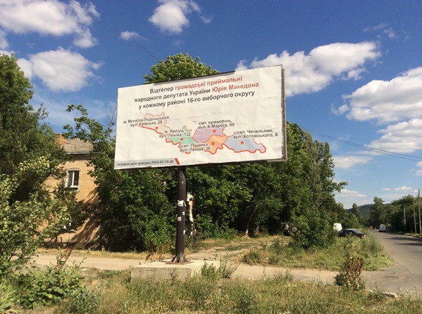 У Могилів-Подільському – найбільшому місті за чисельністю виборців серед виборчого округу № 16, де пройшов із рекордно низькою підтримкою Юрій Македон, з’явилися біг-борди із надписом, що відкрито аж