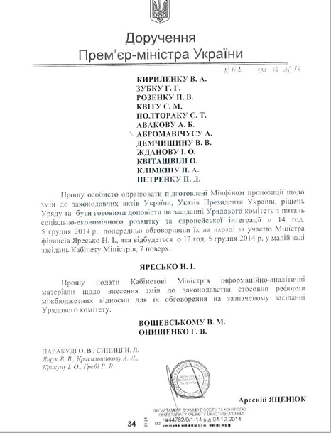 издал поручение министру финансов Наталье Яресько изученить целесообразность