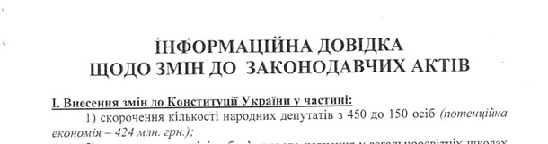 сокращения количества народных депутатов с 450 до 150 человек. Это должно