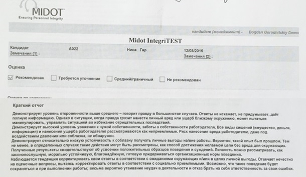 Принципиальной является шкала откровенности. Если результат превышает 70% -