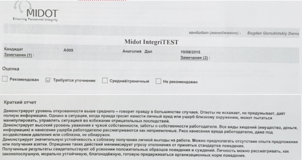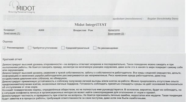 Принципиальной является шкала откровенности. Если результат превышает 70% -