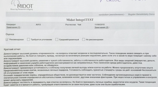MIDOT, представляющий собой систему оценки благонадёжности кандидатов. Его