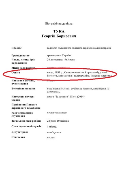 Так какой же вуз окончил Тука? В предвыборной биографии 2014
