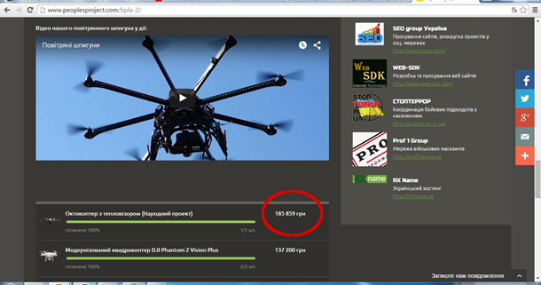 Сейчас мои сыночки, в отличии от тебя, защищают страну с оружием, а не бутылкой в руке, очень хотят пару тройку квадрокоптеров или дронов (они так называют маленькие модельки твоего вертолета). Дроны им помогут еще более нещадно выявлять и мочить сепаров на передке. Одна такая штука стоит 185 000 грн, но она поможет выиграть войну.