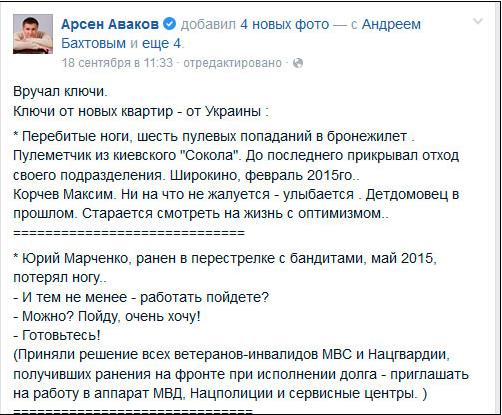 Юрію Марченко ключі від нової квартири. Разом з тим, Аваков Ніяк не компенсував