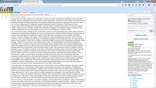 В середине мая 2015 года Международное агентство по атомной энергии (МАГАТЭ) проводило плановую и внеплановую инспекции на Ровенской АЭС. (