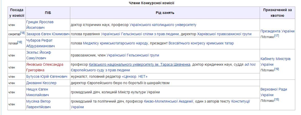 конкурсної комісії важко знайти на просторах Інтернету. Ознайомитись зі складом