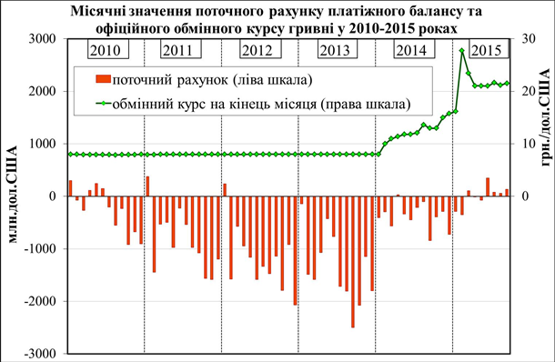 поточного рахунку у квітні 2014 р. (позитивне сальдо становило 31 млн. дол.) при коливанні обмінного курсу у діапазоні