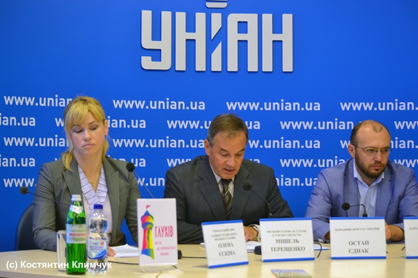 Після виступу Мішеля Терещенка, журналісти почали задавати питання. Склалося враження, що більшість із присутніх в залі працівників ЗМІ спеціально приїхали на прес-конференцію із Глухова.