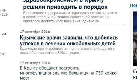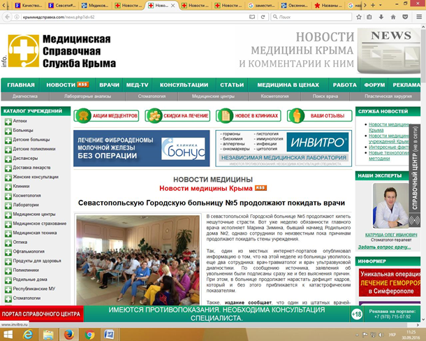 связанные с медициной в Крыму. Сразу же в глаза огромными буквами – “У НАС ВСЕ