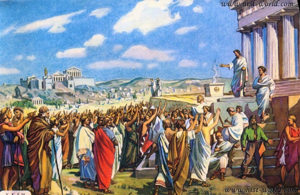 Тем не менее, в древнем полисе при населении в 500 тыс. человек: рабы обоих полов составляли 365 тыс. человек, чужеземцы – 45 тыс. человек. Количество свободных человек достигало примерно 90 тыс. человек. Сложно подсчитать их половозрастное разделение, но некоторые источники говорят о том, что решения в "Народном собрании" принимало приблизительно 3-5 тыс. человек. Приблизительно 1% от общего населения. Вот такая афинская демократия. Абсолютное меньшинство конкурируя между собой принимает решения за 99%.