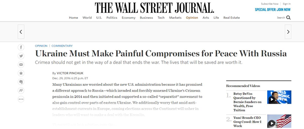 контакты с новой администрацией Белого Дома. Поэтому Пинчук опубликовал в The Wall Street Journal статью под названием «Ukraine Must Make Painful Compromises for Peace With