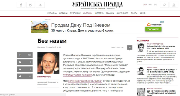 Статьи Пинчука в WSJ и на УП– это просто рерайт чужого мирного плана
