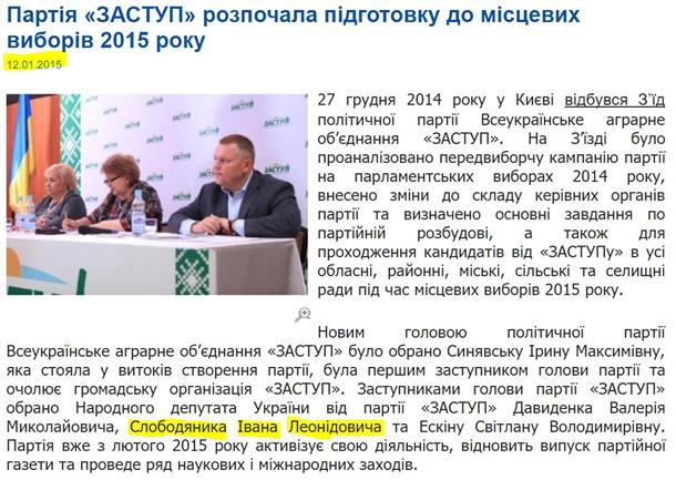 "Заступ". К слову, на сайте самой партии бывшие однопартийцы уже