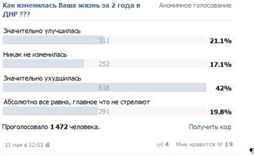 сепарских групп «Вконтакте» увидел социальный опрос среди сторонников «ДНР» на