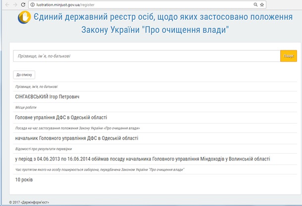 Люстрирован был Сингаевский по той причине, что в период с 04.06.2013 по 16.06.2014 занимал должность начальника Главного управления Миндоходов в Волынской области. Там он прославился активным вытрясанием последних копеек из малого бизнеса, за что его публично хвалил губернатор Климчук, ставленник Януковича. Поэтому в неспокойное революционное время Сингаевский внезапно решил сменить климат и поискать место работы подальше от того, где налогоплательщики знали его как облупленного и требовали немедленной люстрации.