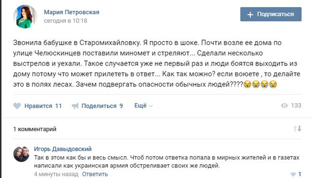 постов касательно обстрела силами ДНР украинских позиций. Стоит заметить, что в