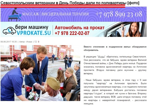 в День Победы дали жилье ….по полквартиры (http://iskra-sev.ru/node/20385).