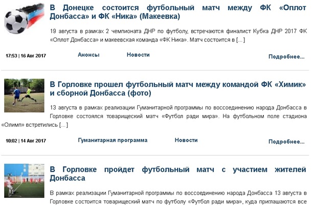 население квазиреспублики о достижениях местных футбольных команд. Как правило,