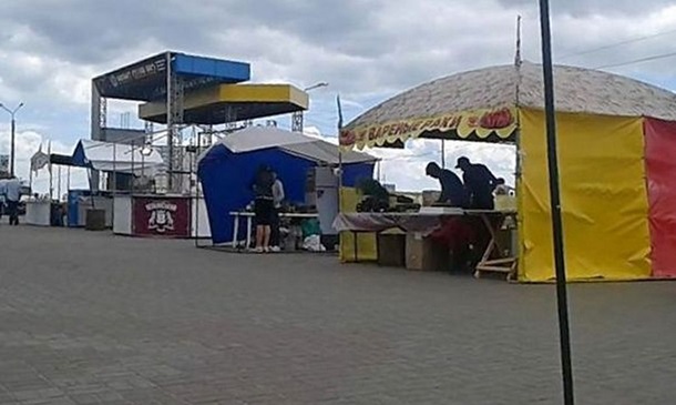палаток жареным мясом и пивом в стиле 90-х годов прошлого столетия.