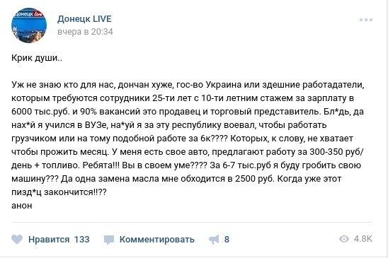 сказать… посмотрите пост в одном из пабликов «ДНР» в соцсети «Вконтакте»