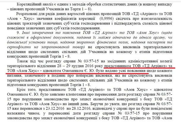 "Торговый дом Агринол" за антиконкурентные согласованные действия при