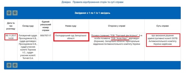 Запорожской области. Последнее заседание по иску ТД Агринол состоялось 6