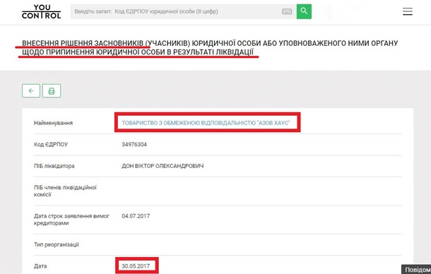 ликвидации ООО "Азов Хаус", а это означает, что государственный бюджет