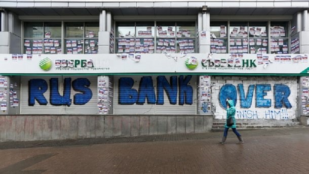 блокажу отделений «Сбербанка» в Киеве, Днепропетровске, Виннице и других
