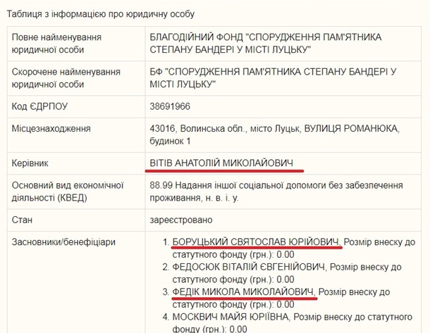 один з прикладів – створення Благодійного фонду «Спорудження пам’ятника Степану