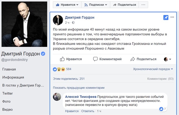Кроме того, наши «друзья» в Европе и Америке, наши международные кредиторы, благодаря которым экономика худо-бедно держится на плаву, исповедуют принцип «выборы вовремя». Внеочередные выборы наряду с невыполненными обещаниями их явно не порадуют. Поэтому «дёргаться» от заявлений Гордона не стоит. Полчаса спустя сплетники, нашептавшие Гордону о выборах, передумали их проводить.