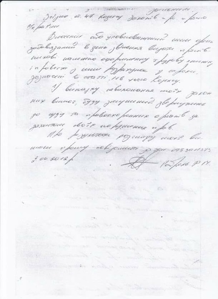 написав на ім’я тодішнього начальника Луцького райвідділу міліції відповідну